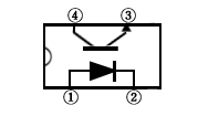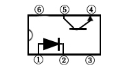 4.第四类,为发光二极管与光电二极管加晶体管(附基极端子)封装的光电耦合器,结构为双列直插6引脚塑封,内部电路见表一,主要用于AV转换视频电路中。