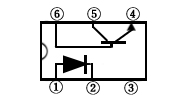 3.第三类,为发光二极管与光电晶体管(附基极端子)封装的光电耦合器,结构为双列直插6引脚塑封,内部电路见表一,主要用于AV转换音频电路中。