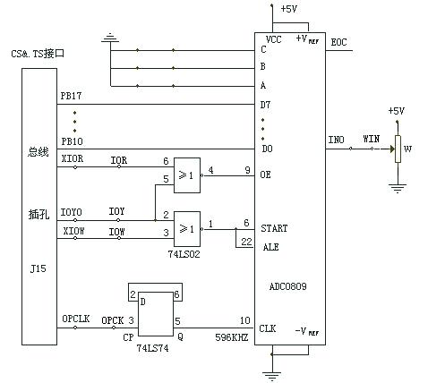 2) ADC0809芯片一片,74LS02、74LS74各一片,4.7K电位器一个,导线5根。