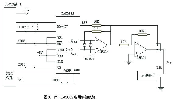 2) DAC0832一片,LM324一片,10K电阻4个。