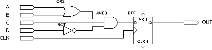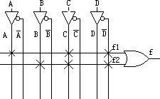 下面我们以一个简单的电路为例,具体说明PLD是如何利用以上结构实现逻辑的,电路如下图: