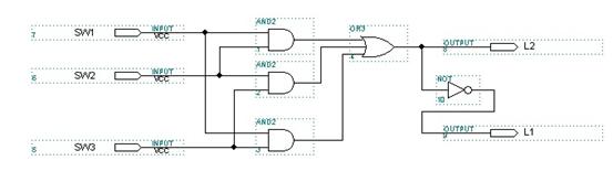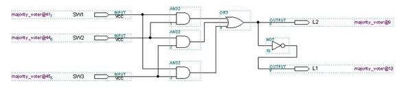 那么我们可以在MAX+plusII中用原理图实现上面的三人表决器
