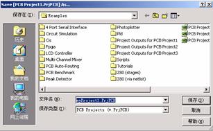 建立了一个新的项目后,执行菜单命令 File/Save Project As ,将新项目重命名为“ myProject1 . PriPCB ”,保存该项目到合适位置,如图 3-4 。