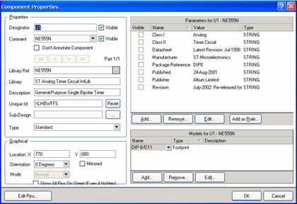 一般情况下,对元件属性设置只需要设置元件标识和 Comment 参数即可,其他采用默认设置。