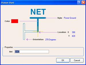 Port (接地符号属性)对话框,如图 3 一 15 所示,这里需要注意网络名称是否正确。单击 OK 按钮完成网络名称设置。