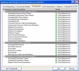 当项目被编译时,详尽的设计和电气规则将应用于设计验证。例如一个 PCB 文件,项目比较器允许用户找出源文件和目标文件之间的差别,并在相互之间进行更新。