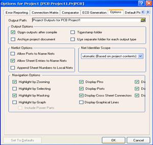 所有与项目相关的操作,如错误检查、比较文件和 ECO 启动均在 Options For Project 对话框中设置。