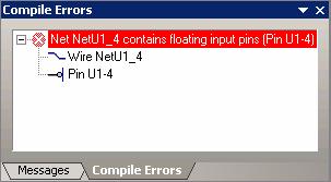 ( 4 )通过错误报告中叙述的错误类型可以修改在原理图的错误。在 Message 对话框中单击一个错误,打开 Compile Error 对话框,如图 3 - 23 所示。同时在 Compile Error 对话框显示错误的详细信息。从 Compile Error 对话框中单击错误跳转到原理图的违反对象进行检查或修改。此时修改对象高亮显示,电路图上的其他元件和导线模糊。修改完成后,可以单击图纸有下方的 Clear 按钮,清除图纸的模糊状态。