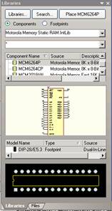 图 4-10 元件库管理器对话框 图 4-11 放置元件 MCM6264CP 后的原理图