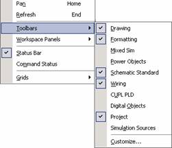 图4-12 打开电路图工具栏的菜单命令 图4 -13 电路图工具栏