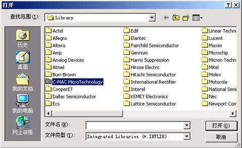 单击图 4-3 中的 Add Library 按钮,将弹出打开元件库文件对话框,如图 4-4 所示。在一般情况下,元件库文件在 Altium\library 目录下下, Protel DXP 主要根据厂商来对元件分类。选定某个厂商,则该厂商的元件列表会被显示。