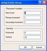 ● 执行菜单命令 View/Toolbars/Drawing, 打开画图工具栏,单击画图工具栏中的按钮,将弹出 Setup Paste Array (阵列式粘贴)对话框,如图 4-39 所示。