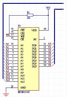 以 6264 原理图为例说明绘制导线工具的使用和技巧。 6264 原理图如图 4-16 所示。在后面介绍的绘图工具的使用都以 6264 原理图为例。