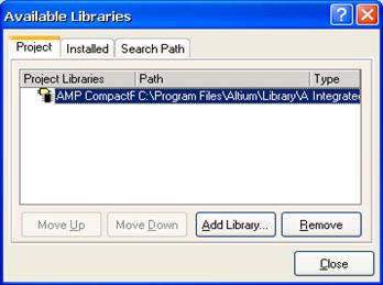 与图 4-3 不同的是显示了已加载的元件库例表。图 4-3 没有加载任何元件库,所以没有元件库例表,同时图 4-3 中的 Remove 按钮灰化。
