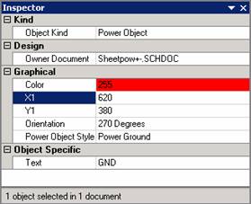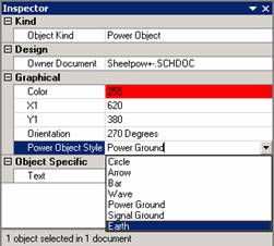 按 F11 键,将弹出 Inspector 面板,如图 4-46 所示。在 Power Object Style 的下拉列表中选择接地符号的类型,就可以对当前打开文档中的所有接地符号全部修改。
