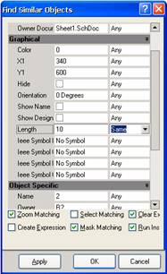 使用 Find Similar Objects 对话框可以设置查找相似对象的条件,同时所有符合条件的对象将以高亮显示的模式显示在原理图编辑窗口上。可以对多个对象同时进行编辑。