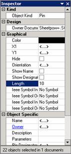 按 F11 键弹出 Inspector 面板,如图 4-48 所示。在 Length 一栏键入相应的元件引脚长度,按 Enter 完成元件引脚长度的编辑,在原理图图纸上显示修改后的元件引脚。