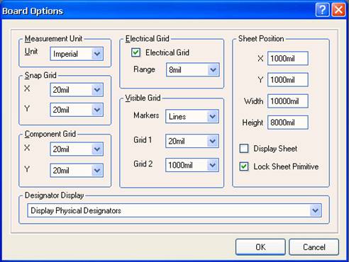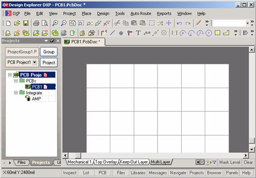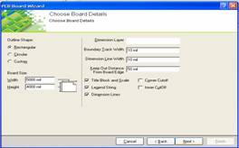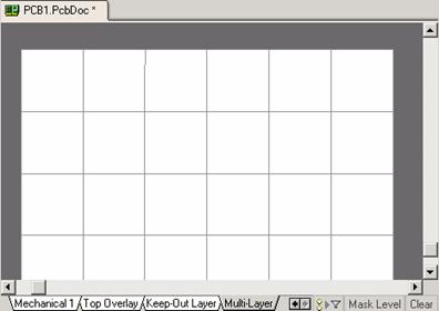 这一步用于 PCB 图纸进行各种设计,主要有:设定 PCB 电路板的结构及尺寸,板层数目,通孔的类型,网格的大小等,既可以用系统提供的 PCB 设计模板进行设计,也可以手动设计 PCB 板。