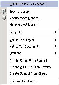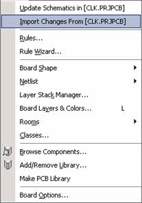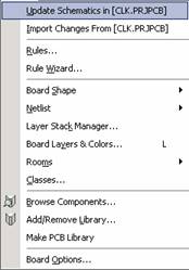 由 PCB 图更新 SCH 原理图与由 SCH 原理图更新 PCB 的原理图相同。在 PCB 设计环境下,执行主菜单命令 Design/Update Schematic in [ CLK. PRJPCB 」,如图 5 - 82 所示。