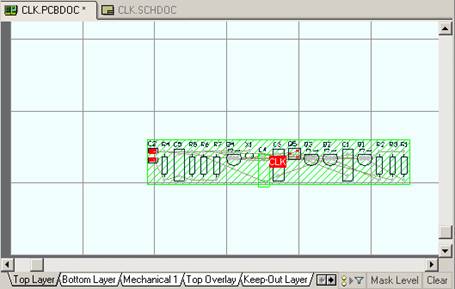 例如 ,在这里对 CLK . PCBDOC 电路板中的电阻 C5 进行更改,将电阻值从 100pF 改为 1000pF 。
