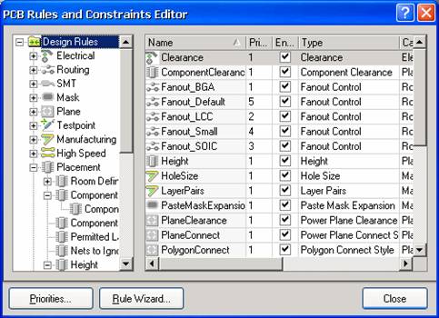 该项列出了 8 项设计规则,这些设计规则都是在 PCB 设计规则和约束对话框里定义
