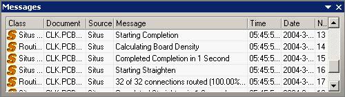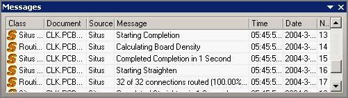 系统将弹出 Messages 信息框,在这里列出了所有违反规则的信息项。包括所违反的设计规则的种类、所在文档、错误信息、序号等,如图 5 — 86 所示。