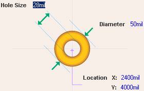 过孔的形状一般为圆形。过孔有两个尺寸,即 Hole Size (钻孔直径)和钻孔加上焊盘后的总的 Diameter (过孔直径),如图 5 — 2 所示。
