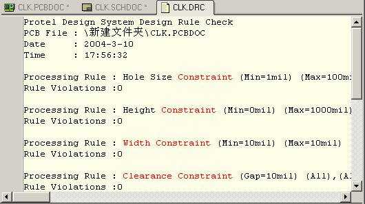电路板设计完成之后,为了保证所进行的设计工作,比如元件的布局、布线等符合所定义的设计规则, Protel DXP 提供了设计规则检查功能 DRC ( Design Rule Check ) , 对 PCB 板的完整性进行检查。